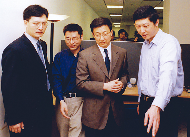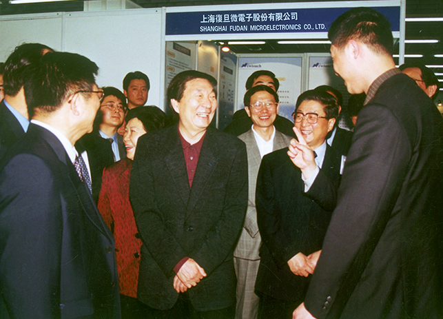 2001年4月17日,在上海張江開(kāi)發(fā)區(qū)浦東軟件園參展的展示會(huì)上,時(shí)任國(guó)務(wù)院總理朱镕基、市委書記黃菊視察了復(fù)旦微電子展位,并聽(tīng)取公司總經(jīng)理施雷的工作匯報(bào)。